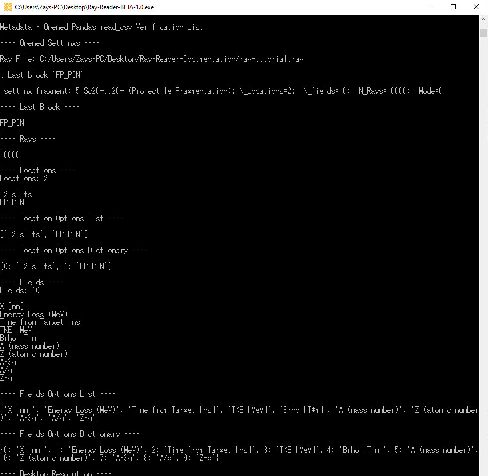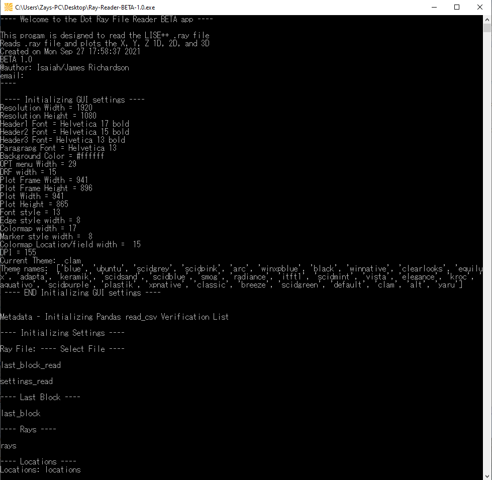 TopThe Ray Reader program has a console running in the background that provides meta data while the program runs. The user can use this to diagnose errors while using the program.