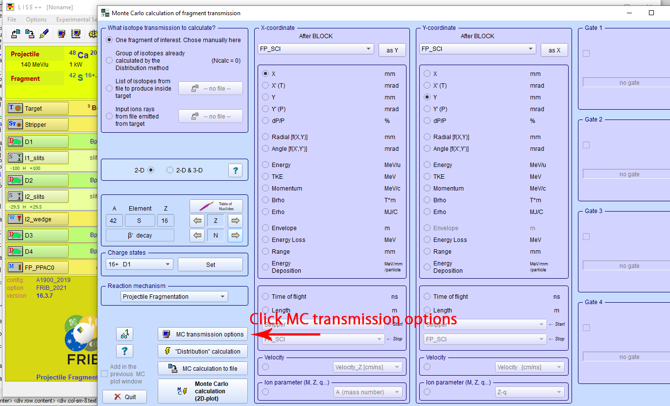 Step 8: Click the "MC transmission options" towards the bottom-left of the "Monte Carlo calculation of fragment transmission" box.