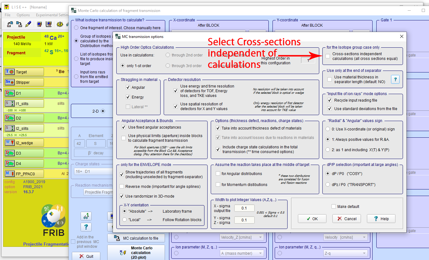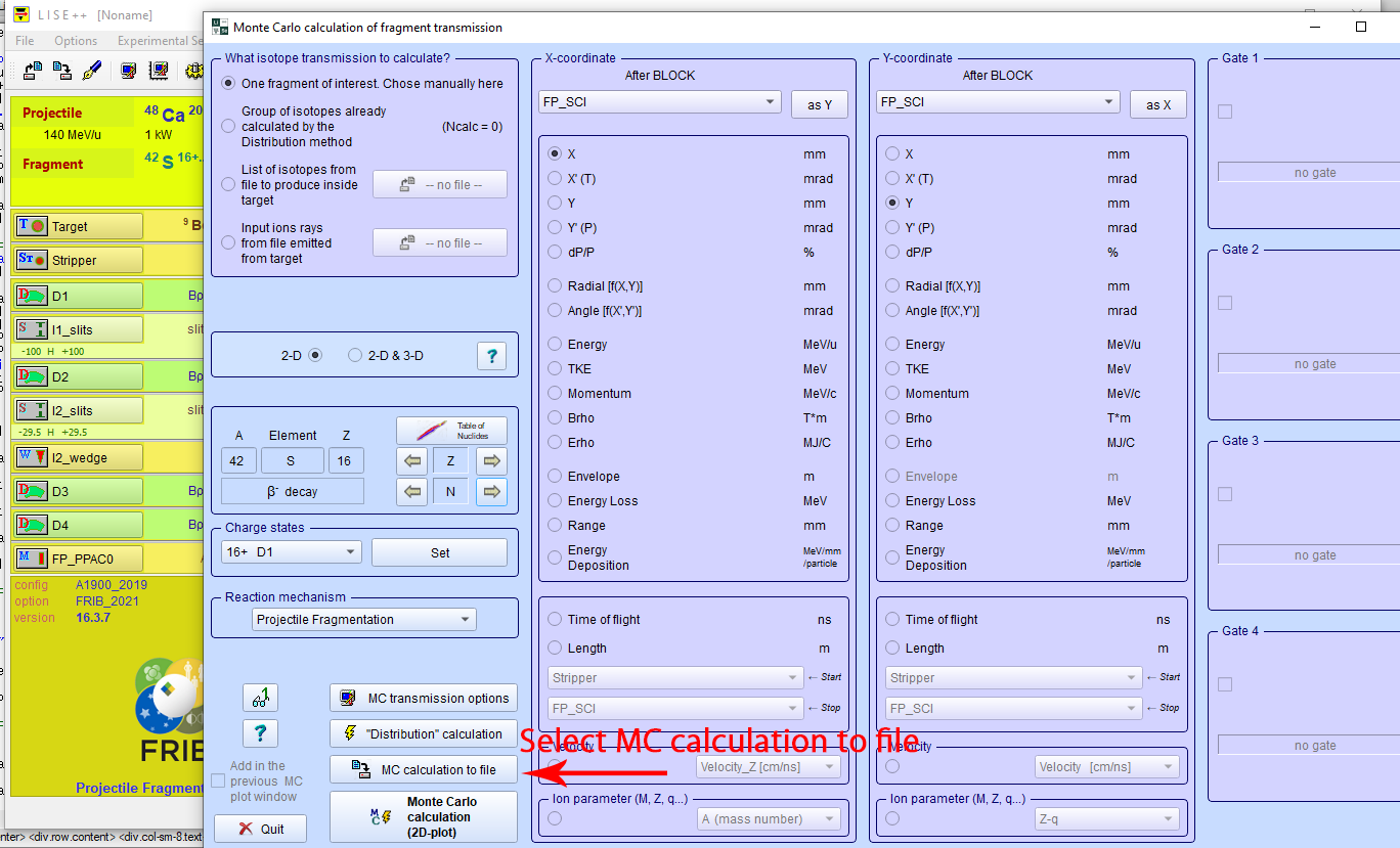 Step 10: Select the "MC calculation to file" at the bottom-left corner of the "Monte Carlo calculation of fragment transmission" box.