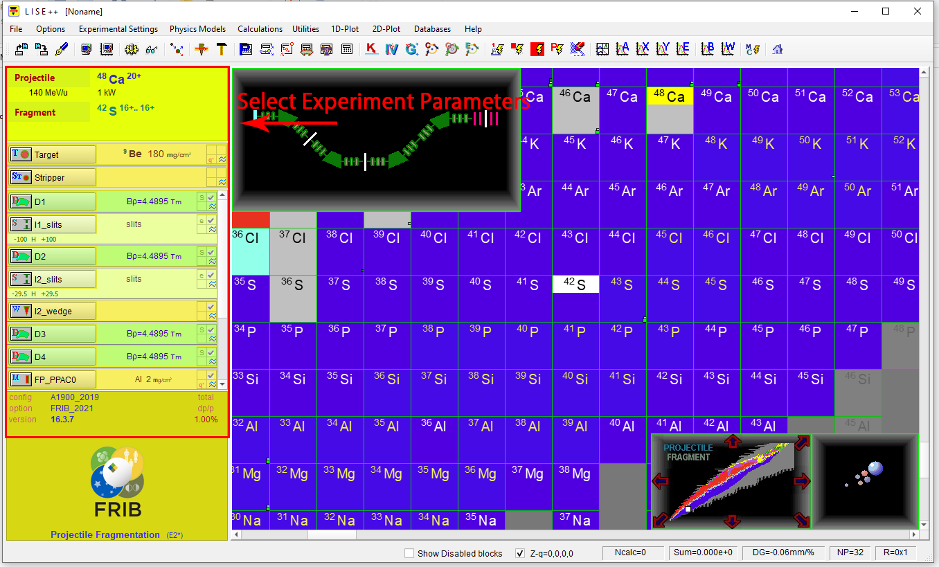 The plot settings contain all the parameters necessary for plotting the simulated output produced from the LISE++ program. The main data is measured at the Locations and Fields that is simulated from the actual facility of interest.