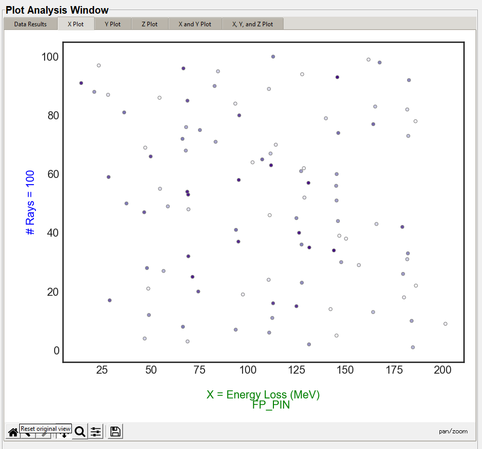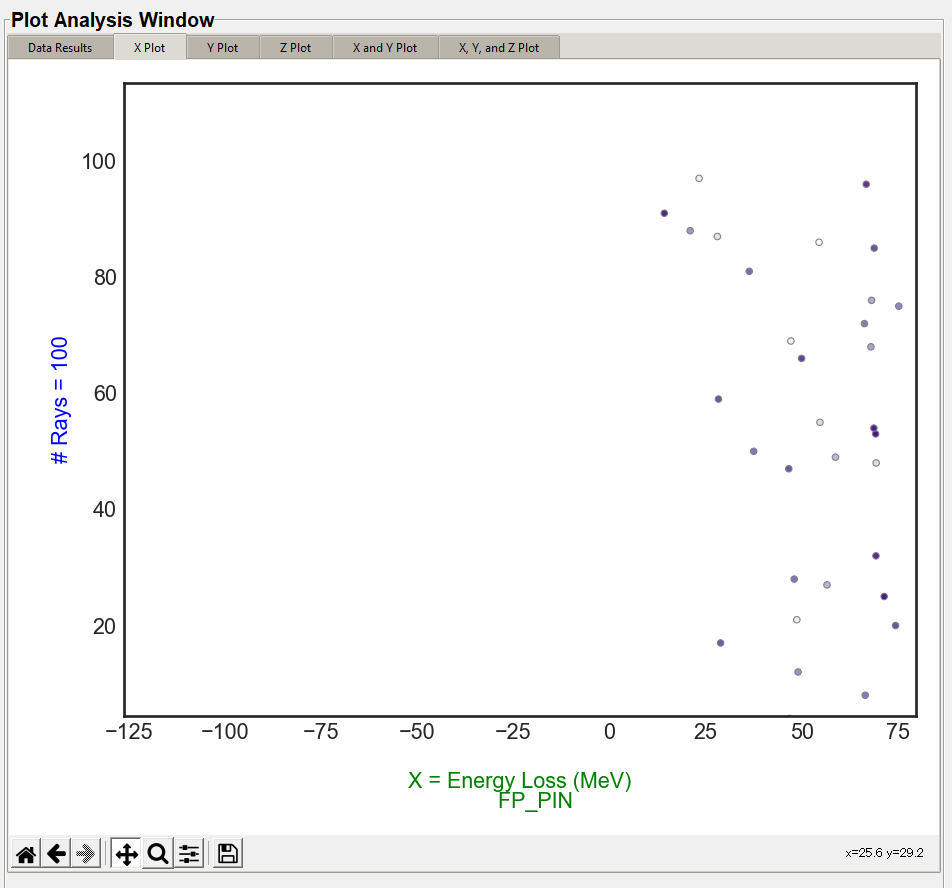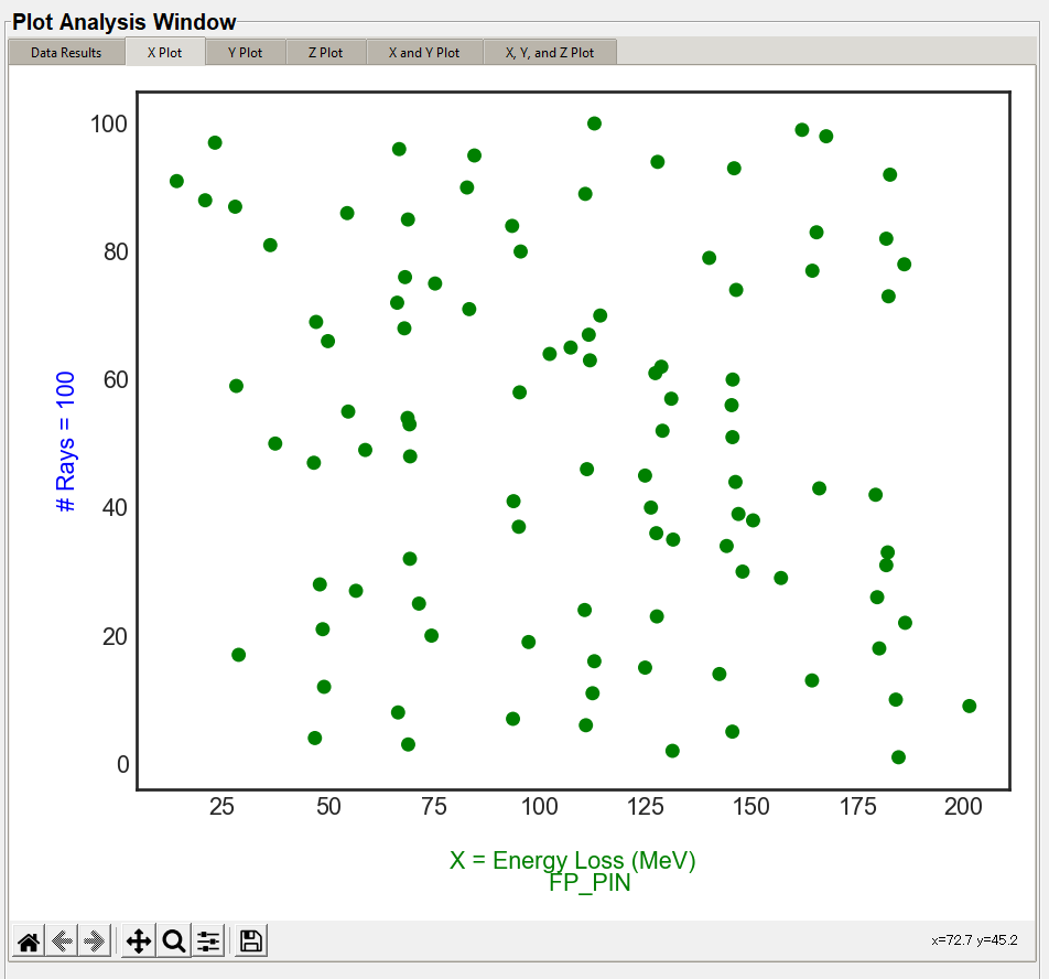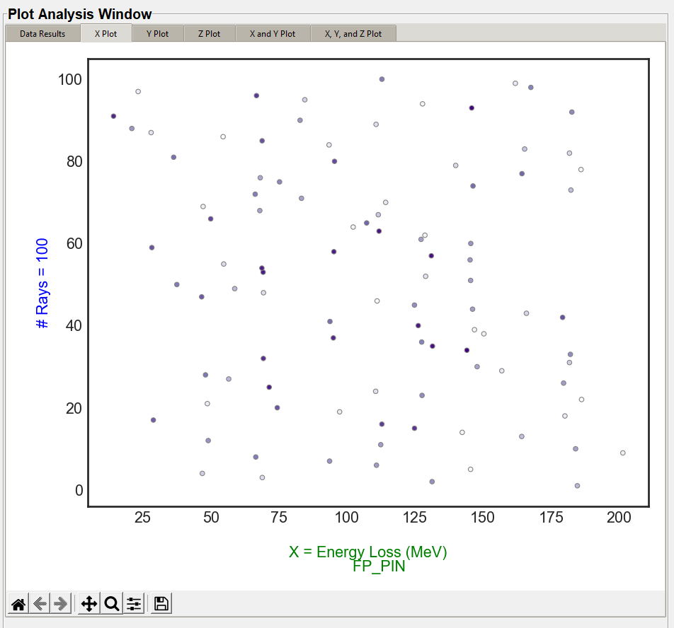 The X, Y, and Z plots function the same. The "X Value" column in the "Plot Settings" will display in the "X Plot" tab, the "Y Value" column will display on the "Y Plot" tab, and the "Z Value" column will display in the "Z Plot" tab. These are the same data columns shown in the "Data Results" tab. The below image is the default style the user will see with no style changes.