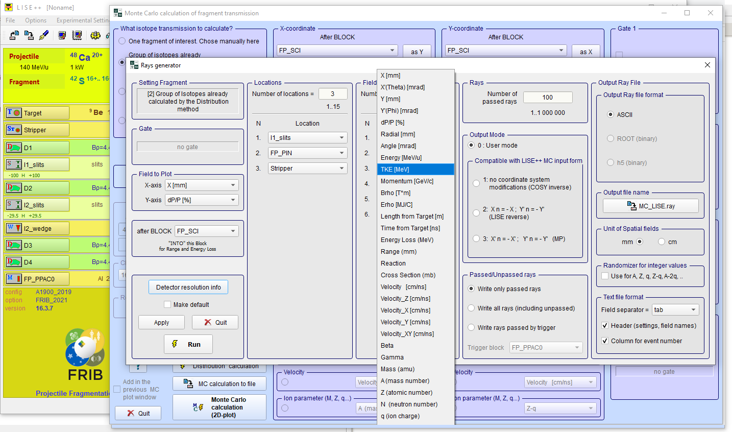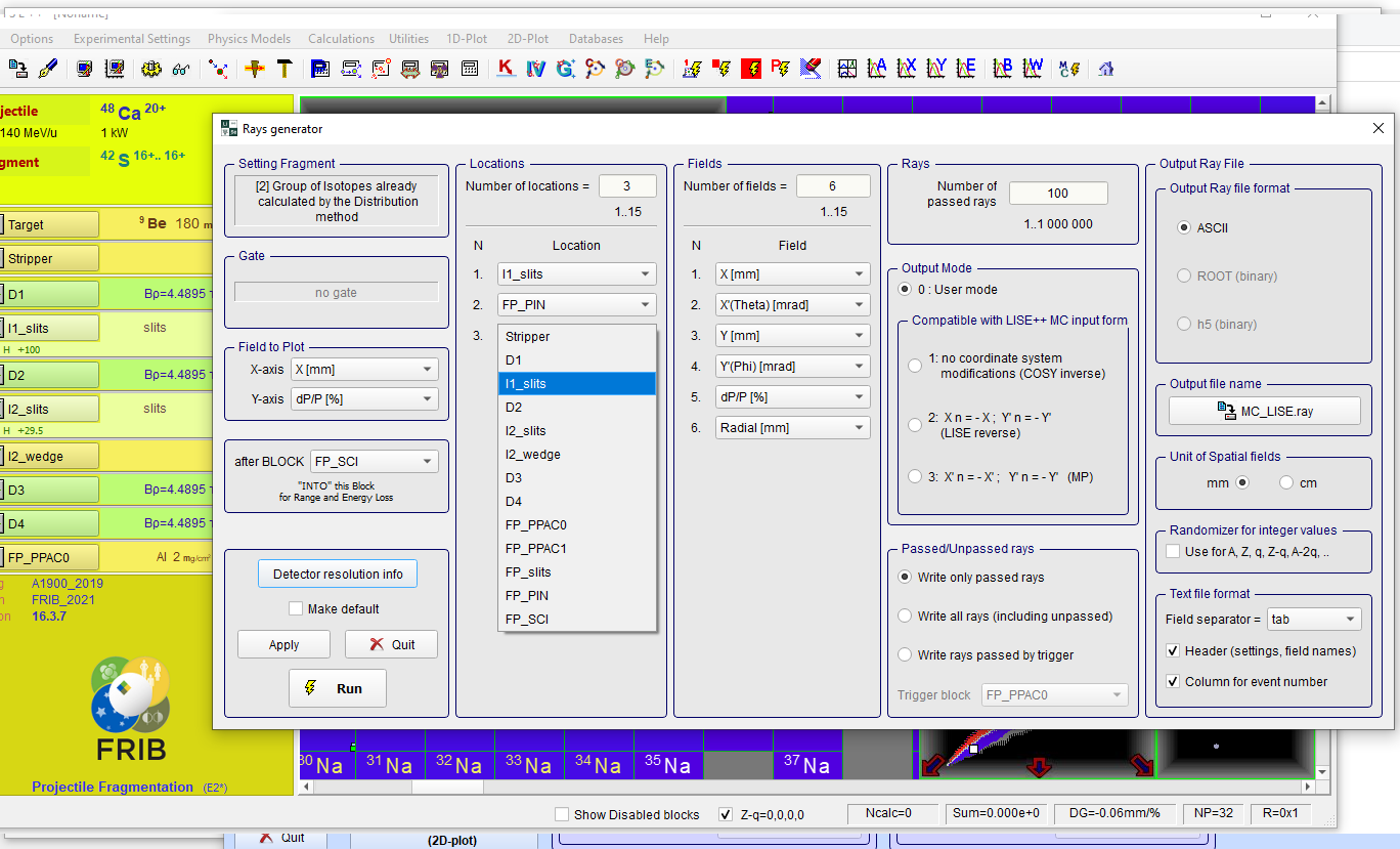 In order for this program to function properly, create a ray file from the LISE++ program.